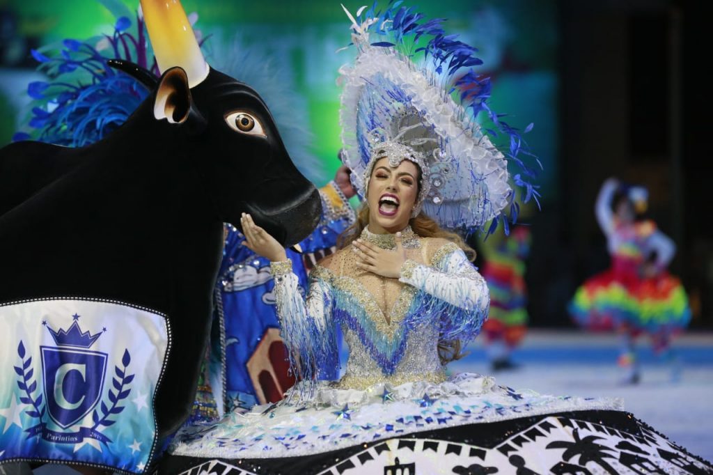 Os Bumbás – O Boi-Bumbá Caprichoso é conhecido como o Boi de Parintins e é representado pelas cores azul e branco. Neste ano, o Caprichoso defende o tema: “Um Canto de Esperança para Mátria Brasilis”, que vai ressaltar valores de um povo que supera, a cada dia, os problemas atuais da sociedade e como as populações lidam com pluralidade e diversidade cultural. O Boi Caprichoso foi criado em 1913, possui 22 títulos do Festival e busca, neste ano, o tricampeonato. O boi tem como berço os bairros da Francesa e de Palmares e possui como símbolo a estrela na testa.