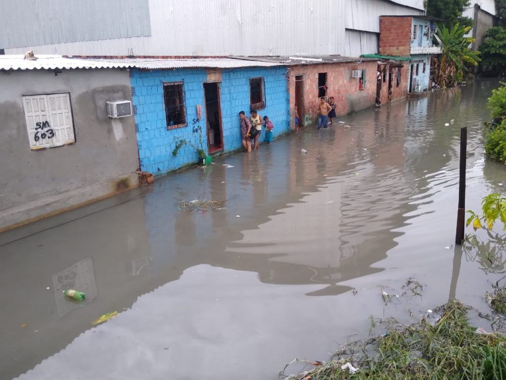 Manaus – A forte chuva que caiu sob a capital na tarde desta terça-feira (2) acabou alagando diversas moradias em diferentes bairros da cidade. No bairro Crespo, zona Sul de Manaus, o Igarapé do 40 transbordou com o intenso fluxo de água e desabrigou moradores que tiveram casas invadidas pela enchente.