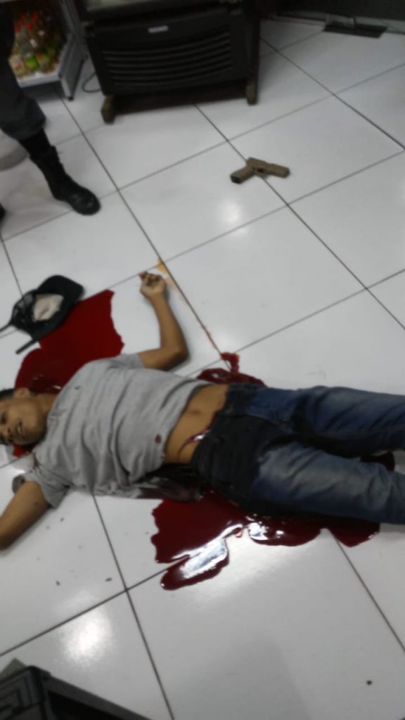 Segundo informações preliminares apuradas no local do fato, o suposto assaltante iria cometer assalto junto outros dois comparsas, no momento em que apareceu um homem armado e atirou contra o trio, dois conseguiram fugir e um acabou sendo alvejado e morto dentro do estabelecimento.