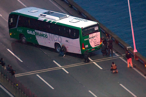 Segundo as primeiras informações, por volta das 6h um homem armado que estava dentro do ônibus obrigou o motorista a atravessar o coletivo na pista, na altura do vão central. O ônibus sequestrado é da Empresa Galo Branco, Linha 2520, que faz o trajeto Jardim Alcântara, em São Gonçalo, até o Estácio, no centro da capital.