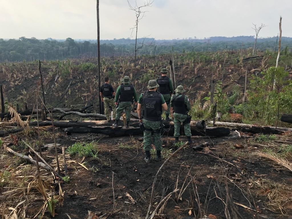 A SSP-AM determinou envio de reforços policiais para investigação de queimadas de desmatamentos criminosos no sul do estado. Desde a última sexta-feira (23/08), equipes da PMAM, por meio do Batalhão Ambiental, realizam a Operação Apuí. Em fiscalização a duas fazendas, acessadas na BR-230, foi constatado o crime ambiental de queimada, numa área de cerca de 200 hectares.