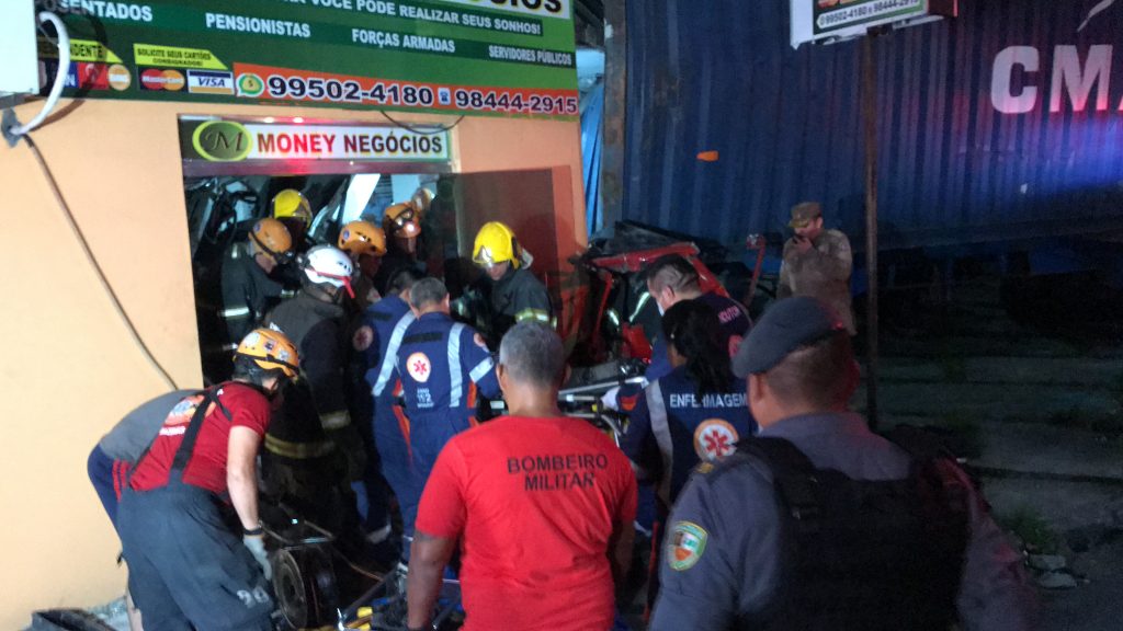 Outras duas pessoas que estavam nas dependências de uma empresa, ficaram levemente feridos após os veículos invadirem a casa e deixarem o local parcialmente destruído.