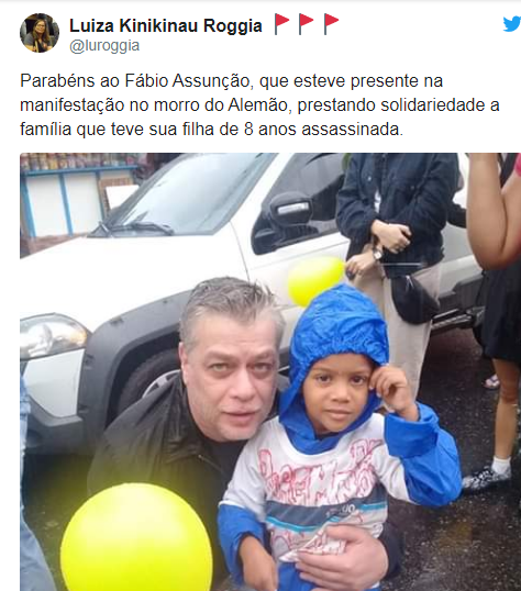 Também pai de uma menina de oito anos de idade, Fábio Assunção pedia o fim da violência policial no conjunto de favelas em que a menina foi atingida. A concentração de manifestantes foi marcada em frente à Unidade de Pronto Atendimento de Itararé. Depois, os participantes seguiram juntos para o velório da menina.