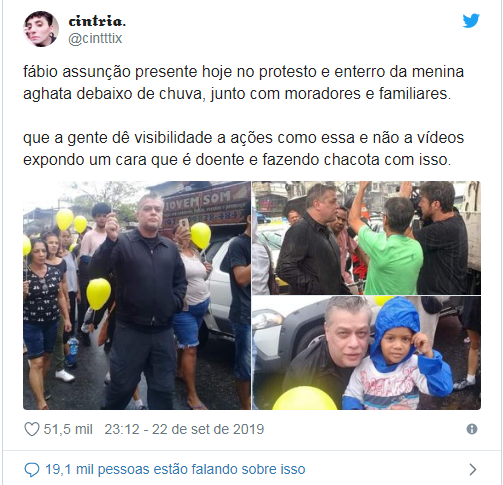 Com informações do site Uai: https://www.uai.com.br/app/noticia/e-mais/2019/09/23/noticia-e-mais,251741/web-se-comove-com-fabio-assuncao-no-velorio-da-menina-agatha-paraben.shtml