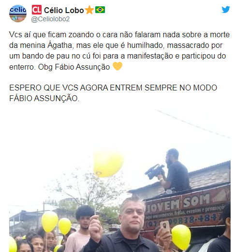 Fábio Assunção é um dos assuntos mais comentados no Twitter na manhã desta segunda-feira. O ator esteve entre as centenas de pessoas que acompanharam o velório da menina Ágatha Vitória Sales Felix, de oito anos, em Inhaúma, na Zona Norte do Rio de Janeiro, na tarde desse domingo.