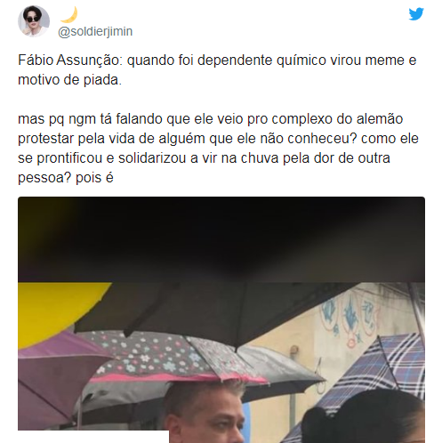 No Twiiter, internautas ressaltaram a atitude do ator: “Muitos falam do tal “modo Fábio Assunção”. Remetem isso à loucura, explorando de forma ridícula uma doença. Bonito poder ver ele lá, sem alardes, no enterro da Agatha. Que as pessoas entrem nesse modo Fábio Assunção: solidário, consciente, que se posiciona e luta”, escreveu uma seguidora.