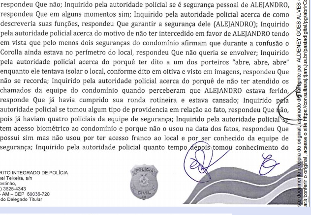 Como o Imediato já havia informado anteriormente, foi confirmado pelo delegado do 19 Dip, Aldeney Goes Alves, que o policial militar, lotado na Casa Civil, Elizeu da Paz foi na noite do crime, à casa de Alejandro Valeiko e com um carro da Prefeitura de Manaus.Todas essas informações o site Imediato deu em primeira-mão aos internautas.