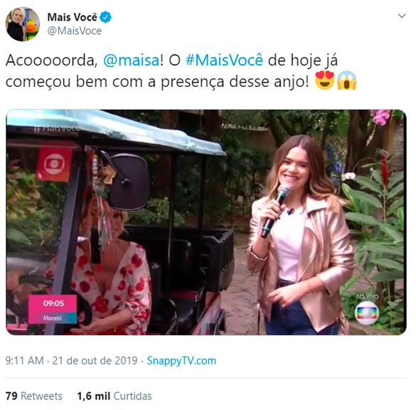 Na abertura do matinal, Ana Maria Braga cumprimentou a jovem e prometeu conversar mais com ela depois. Nas redes sociais, Maisa se empolgou e fez Stories comemorando a participação.