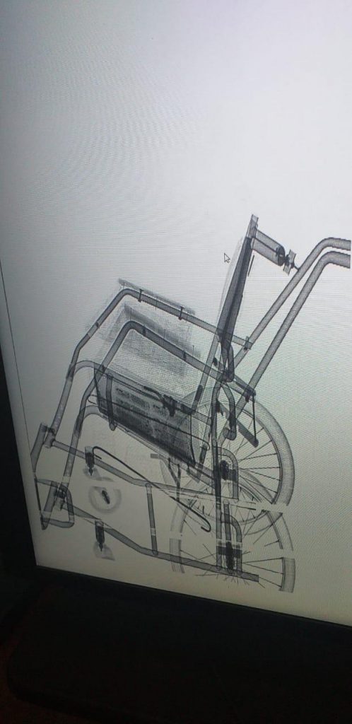 Durante o procedimento de revista, agentes de ressocialização da unidade detectaram os celulares no raio X, os quais estavam escondidos na estrutura da cadeira de rodas.
