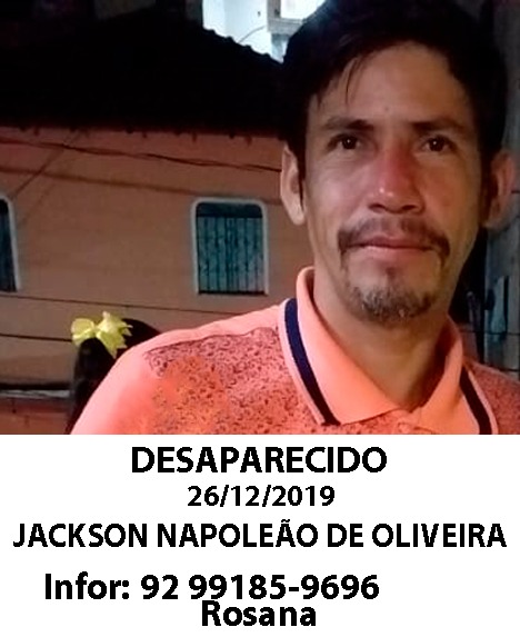 Já são nove dias, pra família é muito tempo. Queremos alguma solução.”, disse o tio do homem, o aposentado Manoel Ferreira, 71 anos. A família de Jackson Napoleão de Oliveira, de 33 anos, que desapareceu no dia 26 de dezembro, chega a suspeitar que o homem tenha sido morto, mas não soube informar nenhuma motivação. Os policiais utilizaram um cão farejador fêmea, durante as buscas inicias.