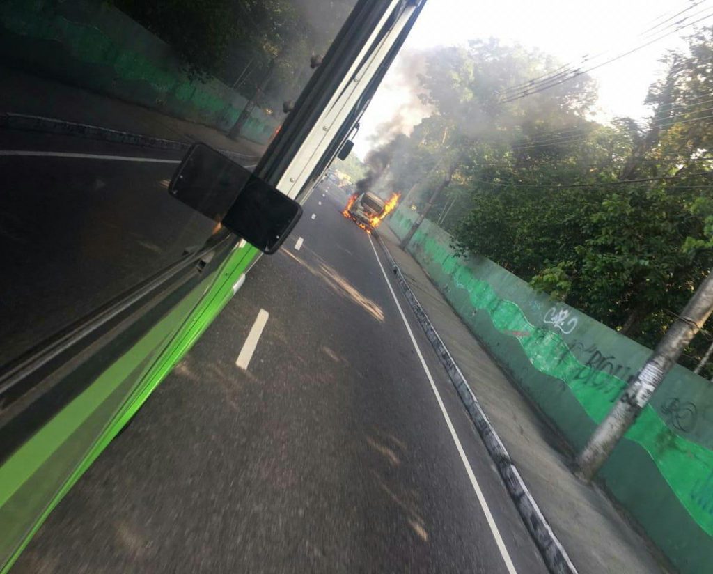 Manaus-AM | Na tarde desta terça-feira (8), um veículo de modelo Kombi que transportava sacos de carvão, quando chegou ao lado do Instituto Nacional de Pesquisas da Amazônia (Inpa), por causas ainda não identificadas, pegou fogo no início da av. Rodrigo Otávio, bairro Coroado, zona Leste de Manaus.