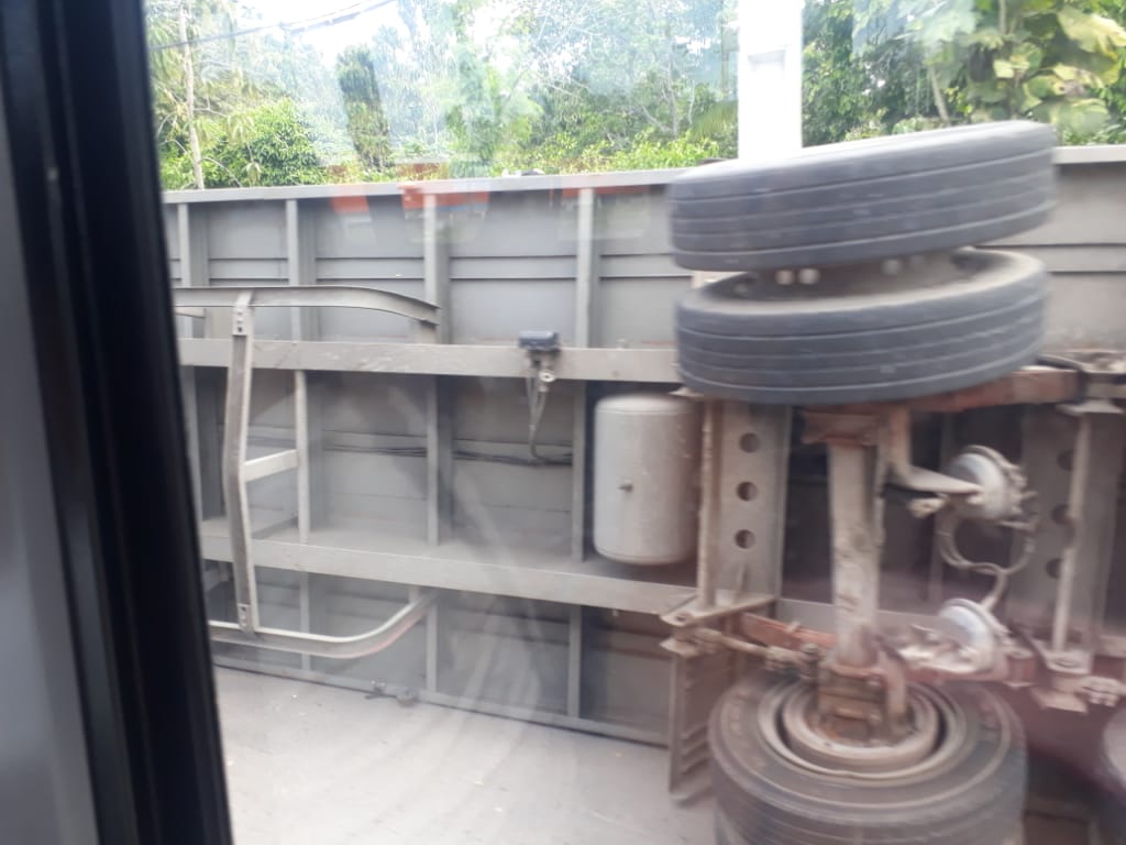 Manaus-AM | Na manhã deste sábado (11), uma carreta que fazia transporte para uma empresa do Pólo Industrial de Manaus (PIM), tombou ao fazer a curva que dá acesso a Av. Buriti, na Bola da Suframa, zona Sul de Manaus.
