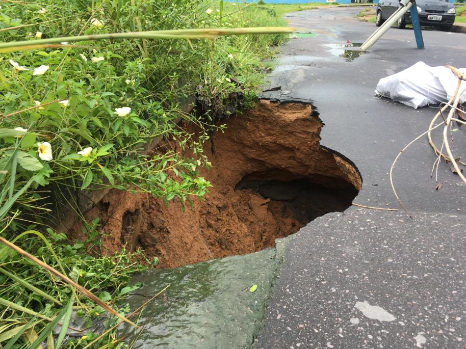 Manaus – AM – A chuva forte iniciada ainda na noite dessa segunda-feira (27) e que se estendeu até a manhã desta terça-feira (28) provocou estragos como a abertura de crateras e desabamentos na capital.