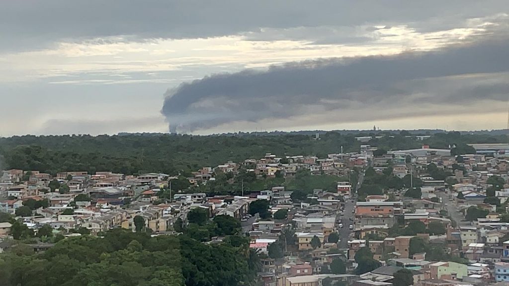 Manaus – AM _ Um incêndio acontece na usina de reciclagem de plásticos Terra Serviços e Soluções, localizada na Rua Colatina, Estrada do Puraquequara, zona Leste da capital, na manhã desta quarta-feira (29) .