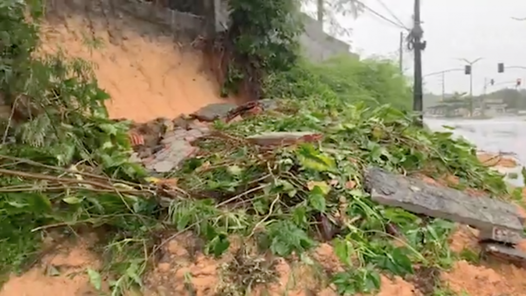 Ainda na zona Leste da capita, a chuva provocou o desabamento de parte de um barranco e muro na Avenida Alameda Cosme Ferreira, no bairro São José. A pista foi parcialmente invadida pelos entulhos.