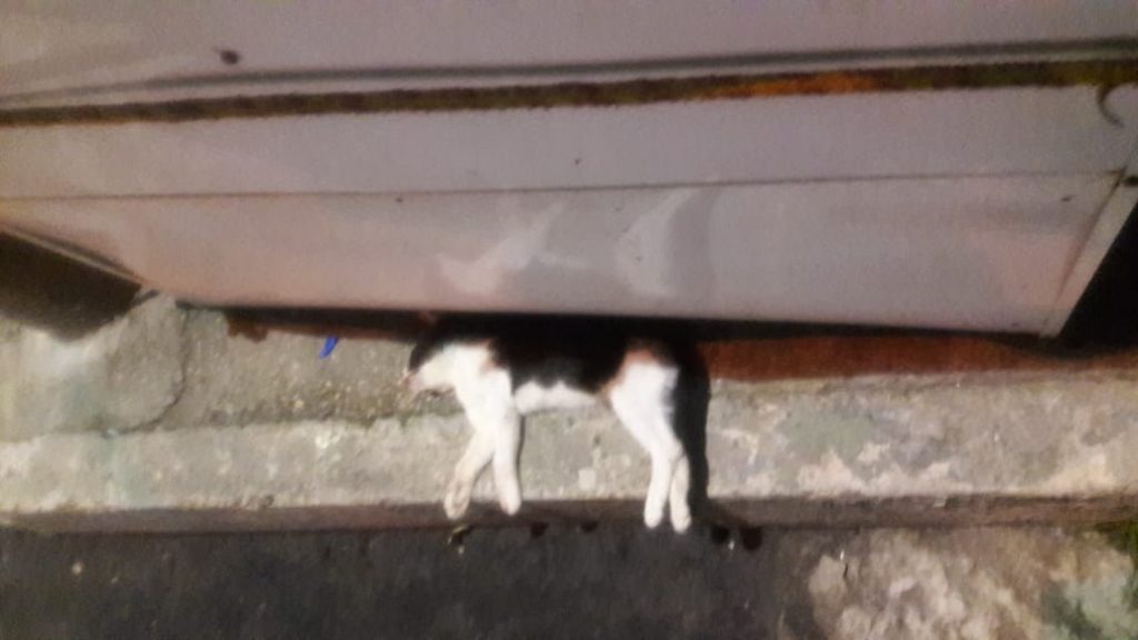 Os policiais encontram o corpo de um gato que o suspeito, enfurecido, teria matado.