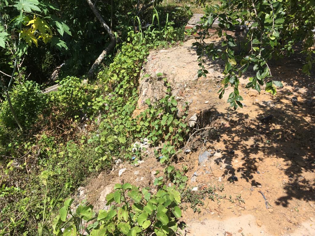 O presidente comunitário disse que os próprios moradores se juntaram e compraram material para construir um meio fio no local e impedir que a água da chuva ocasione o desmoronamento do barranco.