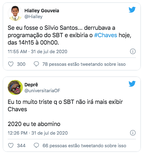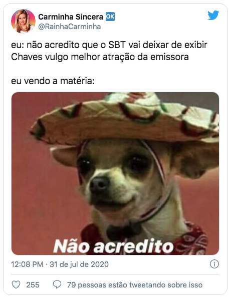“2020 nos tirou tudo, até ‘Chaves’!”, brincou um internauta.
