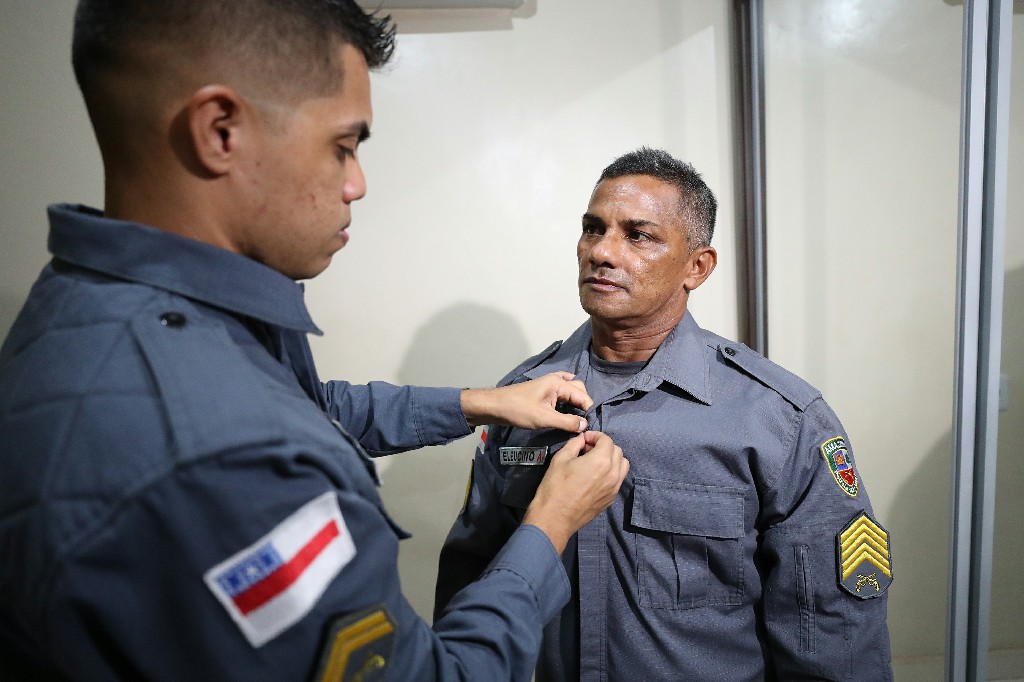 Incentivo – Eleucino assegura que o desejo de Maurílio surgiu de forma natural e que recebeu como um verdadeiro presente a notícia de que o filho havia sido aprovado. “Incentivei a se inscrever, fez o concurso, passou na primeira turma, graças a Deus. O maior prazer que eu tenho é ser policial militar e ter um filho na corporação. Estou muito feliz por você ser cabo da Polícia Militar hoje. Espero que você continue um bom militar, um herói, um grande exemplo tanto para os seus colegas, para a corporação, e para mim também”, disse Eleucino, para o filho.
