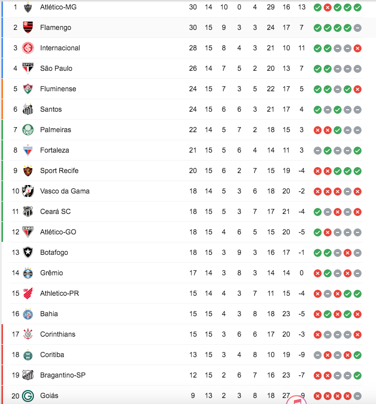 Confira a tabela do Brasileirão