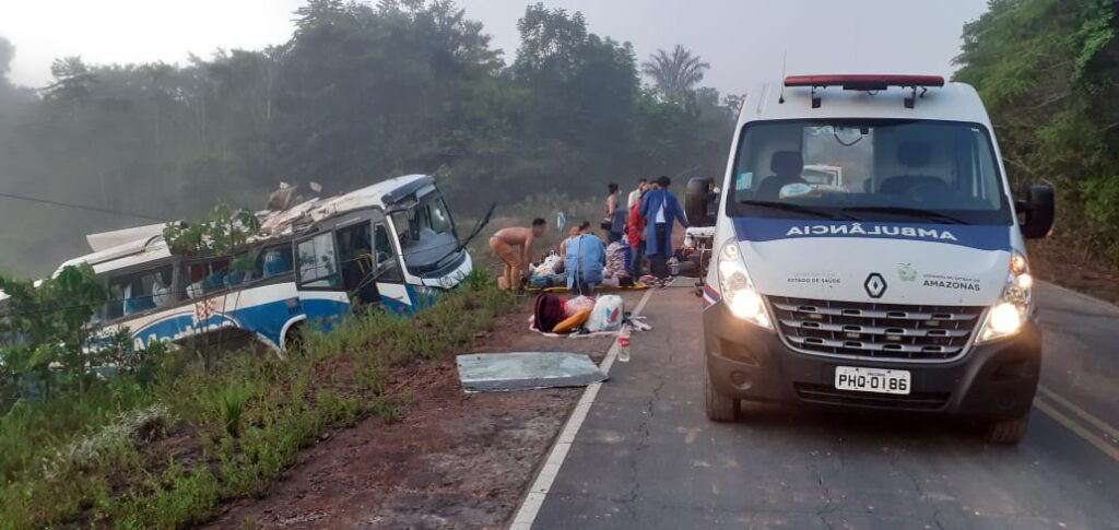 Manaus-AM | Nas primeiras horas deste sábado (31), um grave acidente deixou pelo o menos mais de 40 pessoas lesionada após um ônibus perder o controle na via, capotar e parar fora da via.