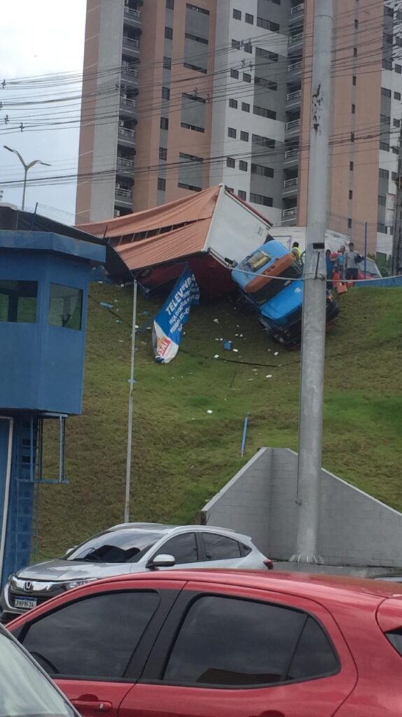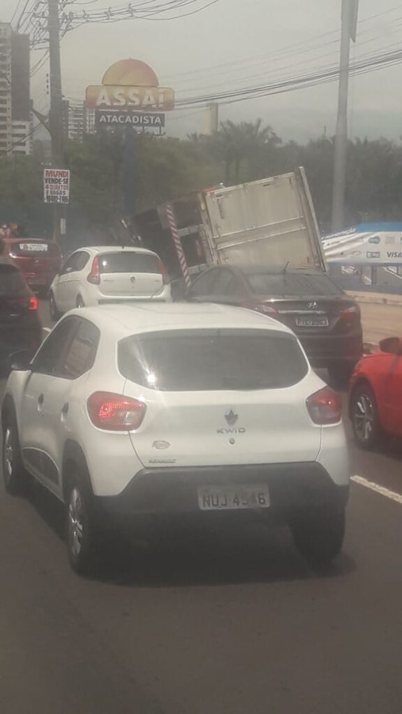 Manaus- AM | Na manhã desta quinta-feira, uma carreta acabou tombando em frente à um supermercado, o Assaí Atacadista, na Av. Ephigênio Salles, zona Centro sul da capital amazonense.