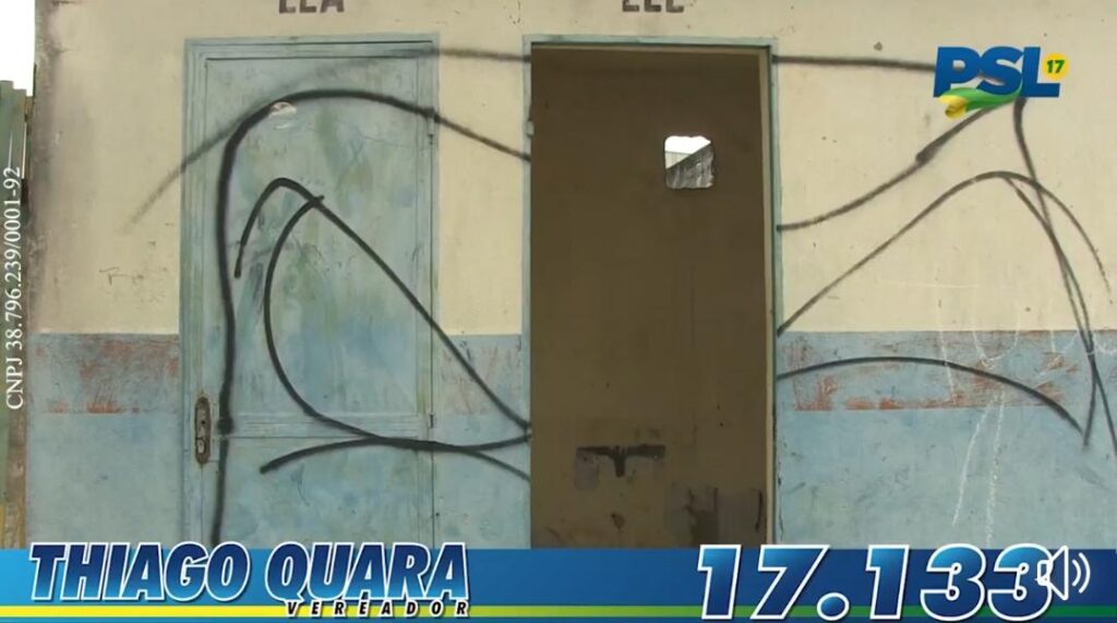 “A maquiagem que eles fizeram aqui, foi tão “bem feita” que vou mostrar para você o banheiro que fica à disposição dos funcionários e da comunidade. Os funcionários ficam preocupados por conta dessa pandemia. Antes da época de eleição nada foi feito, porque só agora, em campanha, eles apareceram?”, questiona.