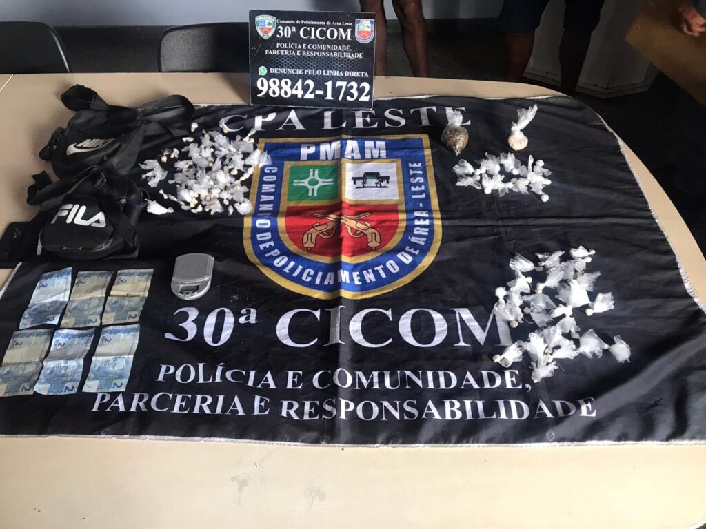 Manaus-AM | A Polícia Militar do Amazonas (PM-AM), por meio do Comando de Policiamento da Área Leste, 30ª Companhia Interativa Comunitária (Cicom), realizou a prisão de três homens por tráfico de drogas e a apreensão de um adolescente de 17 anos por ato infracional análogo ao crime de tráfico de drogas, na Invasão Coliseu, bairro Jorge Teixeira na zona Leste de Manaus.