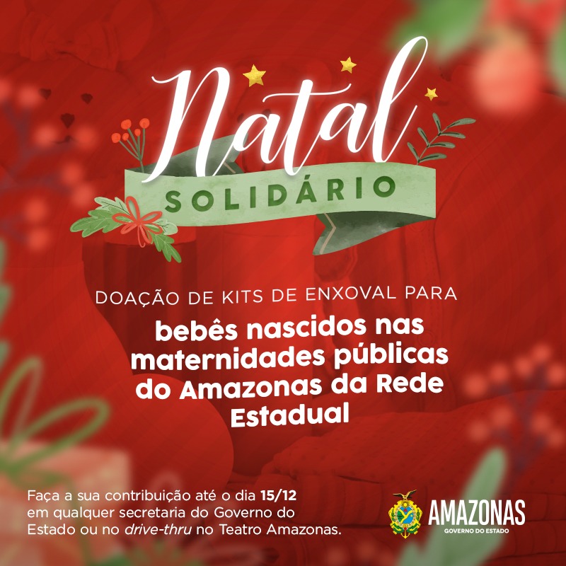 AMAZONAS | O Governo do Amazonas, por meio do Fundo de Promoção Social e Erradicação da Pobreza (FPS), deu início à Campanha “Natal Solidário”. A ação, que é liderada pela primeira-dama do estado, Taiana Lima, promoverá uma live-show com o cantor Uendel Pinheiro no Teatro Amazonas. Todo o recurso arrecadado será usado para a compra de kits de enxoval, que serão doados para mães de baixa renda em maternidades da rede estadual de saúde, durante a semana do Natal.