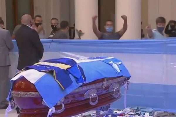 “Maradona para mim é a melhor coisa que aconteceu em minha vida. Eu o amo como amo meu pai, e é como se ele mesmo tivesse morrido”, disse Cristian Montelli, de 22 anos, um torcedor do ex-clube de Diego, o Boca Juniors, com lágrimas nos olhos após passar pelo caixão do astro. “Se eu morrer jovem, com sorte lá em cima posso jogar bola e assistir a um jogo do Boca com ele”, acrescentou Montelli, que tem o rosto de Maradona tatuado em uma perna.