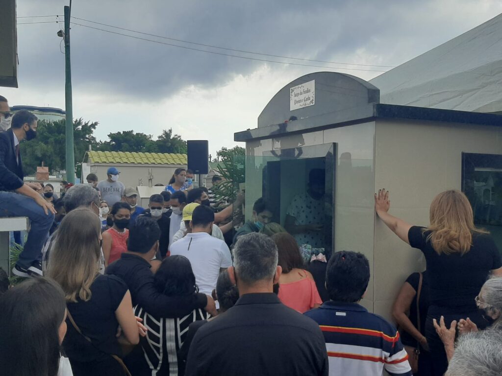 Uma multidão de amigos acompanharam o enterro de dentro do cemitério, e uma outra multidão aguardavam do lado de fora, pois não puderam entrar devido aos cuidados com a Covid-19.