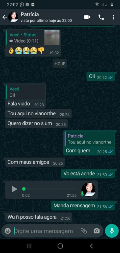 Logo em seguida, a adolescente teve um último contato por volta das 21h55 com seu irmão por meio de um áudio na plataforma Whatsapp, informando que estava no shopping Manaus Via Norte na companhia de amigos. “Não posso falar agora, só depois”, disse a menor no áudio.