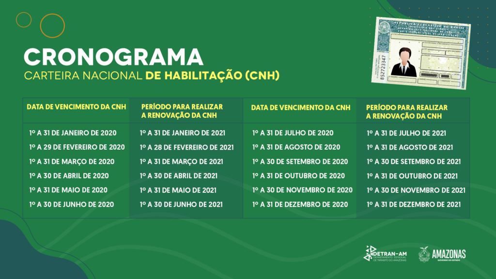 Contudo, é importante lembrar que está em vigor a Resolução 805, do Conselho Nacional de Trânsito (Contran), que estabeleceu novos prazos para a renovação das CNHs vencidas entre 1º de janeiro e 31 de dezembro deste ano. A pessoa cujo documento teve a validade expirada dentro desse prazo tem um calendário de renovação até 31 de dezembro de 2021, conforme cronograma fixado no site do Detran-AM. Ou seja, ela não precisa correr para renovar a habilitação agora, basta realizar agendamento para o período informado pelo Contran.