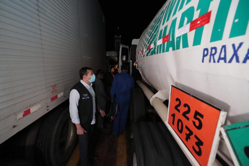 “Recebemos nesta madrugada essa carga de 70 mil metros cúbicos da maior fornecedora de oxigênio do Estado (White Martins), e começamos a restabelecer a normalidade da nossa rede estadual de saúde. Algumas dessas carretas já saíram daqui direto para as unidades para fazer esse abastecimento”, disse o governador Wilson Lima.