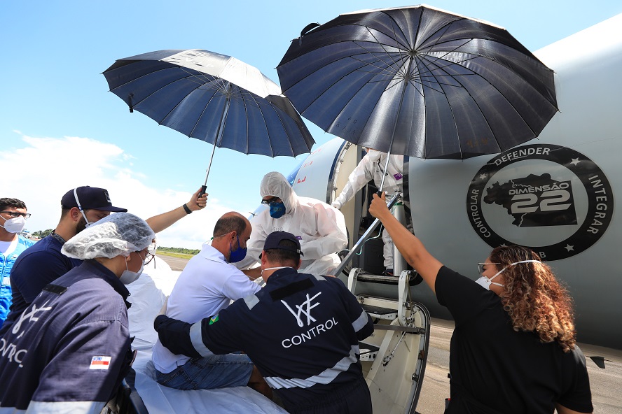 Os pacientes embarcaram em um avião da Força Aérea Brasileira (FAB) que saiu da Base Aérea de Manaus. A FAB tem atuado na força-tarefa ao lado do Governo do Estado e Ministério da Saúde (MS) no enfrentamento da Covid-19.