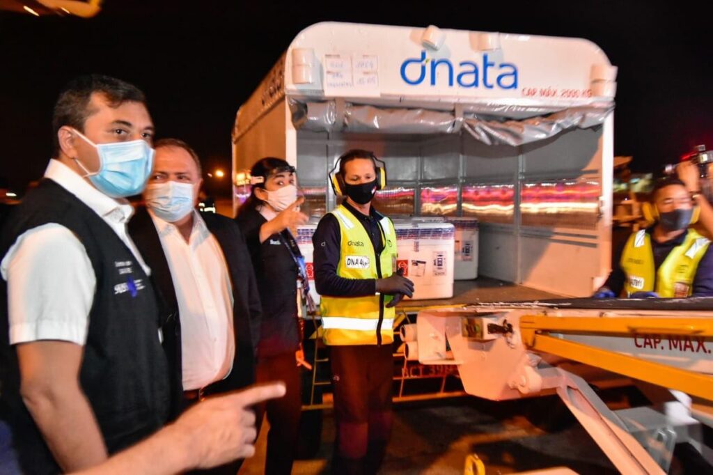 “Esse é um lote de 132,5 mil e, nesse domingo, estaremos recebendo um outro lote de 44 mil. Com isso vamos vacinar todos os idosos acima de 60 anos de idade e todos os profissionais de saúde. Daqui essas vacinas serão enviadas até a (Fundação de) Vigilância em Saúde para que possamos fazer o registro e catalogar, e a partir de então começar a distribuição na capital e no interior”, explicou Wilson Lima, que que esteve acompanhado do ministro da Saúde, Eduardo Pazuello.