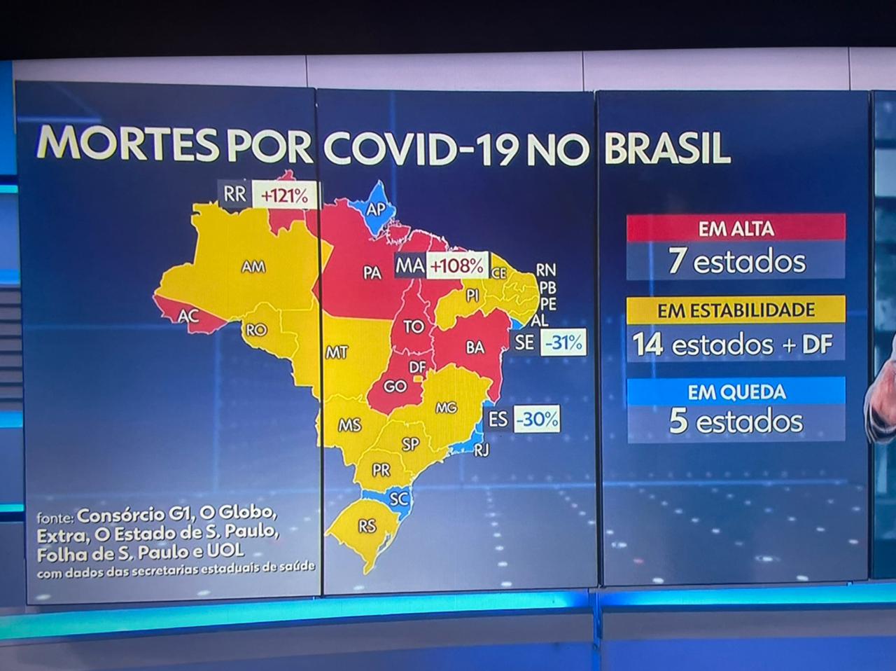 - Em estabilidade (14 estados e o Distrito Federal): PR, RS, MG, SP, DF, MS, MT, AM, RO, AL, CE, PB, PE, PI e RN