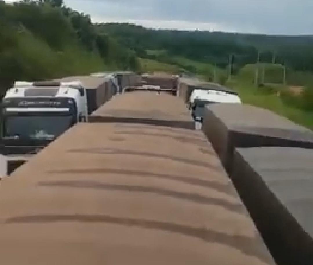 Cerca de 5 mil carretas estão na rodovia onde aguardam acesso à Estação de Transbordo de Carga (ETC) do Tapajós, local de rota para o escoamento de commodities agrícolas da região, no distrito de Miritituba.