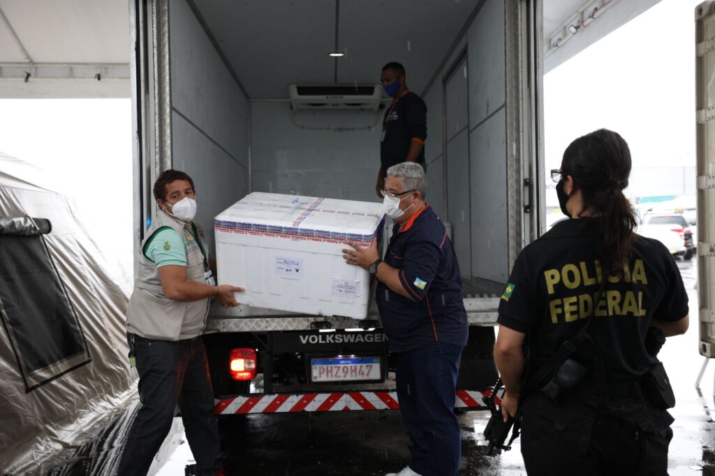 A remessa, destinada ao grupo prioritário de pessoas entre 60 e 69 anos de idade, foi descarregada no Aeroporto Internacional Eduardo Gomes e encaminhada, em seguida, para a sede da Fundação de Vigilância em Saúde (FVS-AM), para distribuição à capital e aos municípios do interior.