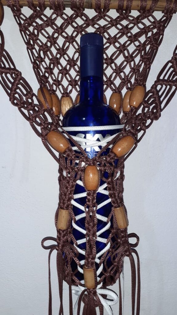 “As opções são variadas. É possível produzir tapetes, porta-garrafas, centro de mesas e luminárias, as que mais gosto. Uma obra de pequeno porte leva no máximo dois dias. A luminária leva uma semana e meia, principalmente quando varia da quantidade de nós utilizados. Tem o nó básico, o nó borboletinha, o zigue-zague, além de uma infinidade de técnicas. Depende muito do que está fazendo”, disse.