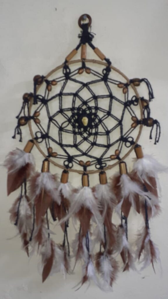 “Eu aprendi a técnica da tecedura aos 15 anos com minha mãe. Tive que buscar no passado o que sabia fazer de melhor. Poderia construir cocar e adereços, mas o mercado é muito grande em Parintins e tinha muita gente fazendo. Aí me lembrei do macramê. Não foi fácil e não está sendo fácil. Por meio dessa arte consigo fazer umas peças e tirar um lucro”, explica