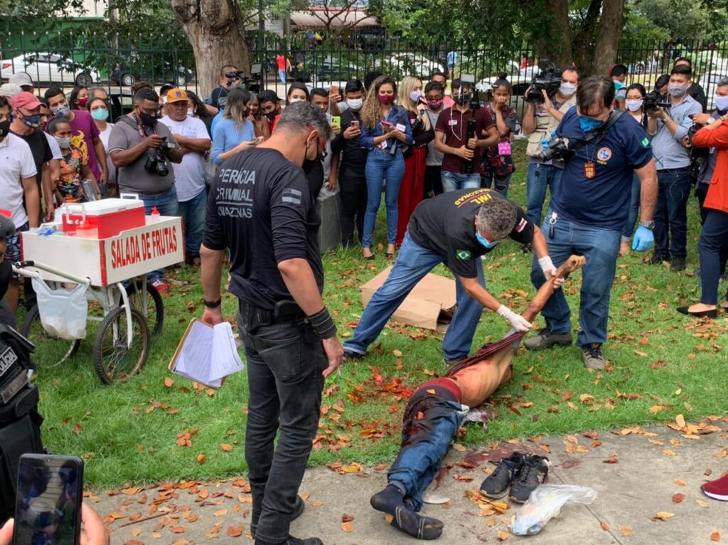 Imagens de Alípio Grijó/Imediato| Vendedor ambulante é assassinado com 17 facadas na Praça da Matriz, Centro de Manaus