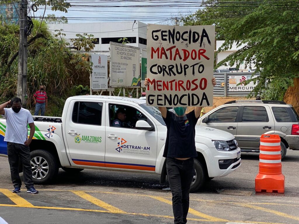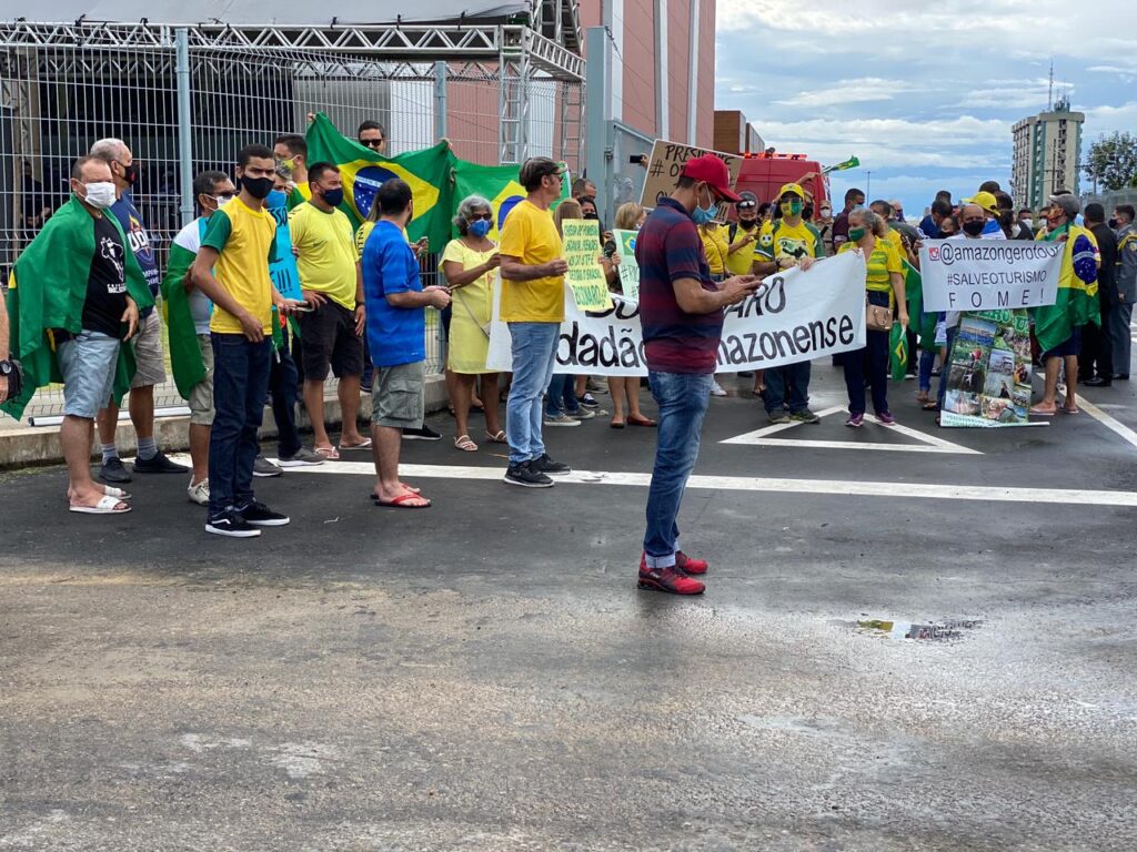 Presidente Jair Bolsonaro é recebido por manifestantes em Manaus, onde participará de eventos oficiais e receberá título de cidadão do Amazonas.