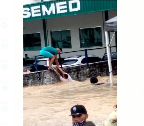 O vídeo mostra a enxurrada arrastando pessoas, carros, e objetos em um verdadeiro rio que se formou em frente ao depósito da Secretaria Municipal de Educação (Semed) e também do Posto de Interiorização e Triagem, responsável por receber de forma social os haitianos e venezuelanos imigrantes no Amazonas.