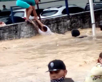Nas imagens é possível ver pessoas sendo levadas pela grande inundação, carros ficam submersos e as tendas são totalmente destruídas