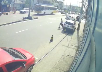 Nas imagens é possível ver o momento em que o suspeito sai do veículo após furtar os pertences da vítima, atravessa a rua e entra no lado do passageiro de um veículo preto que o aguarda do outro lado da via, supostamente com um comparsa, empreendendo fuga em seguida.