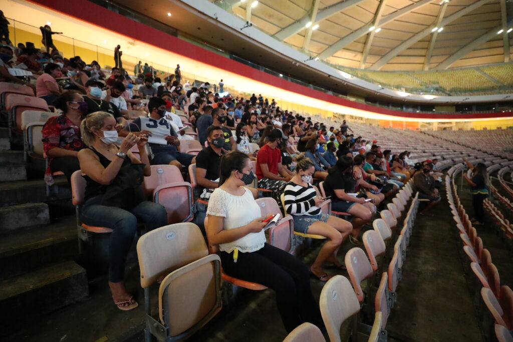 “As pessoas do Vasco Vasques estão sendo dirigidas para cá, sendo administrada a fila, estão na arquibancada e daqui elas estão sendo atendidas nesses postos. A gente precisou fazer essa adequação urgente dado o número de pessoas que estavam aguardando no Vasco Vasques”, explicou o secretário executivo de controle interno da Secretaria de Estado de Saúde (SES-AM), Silvio Romano.