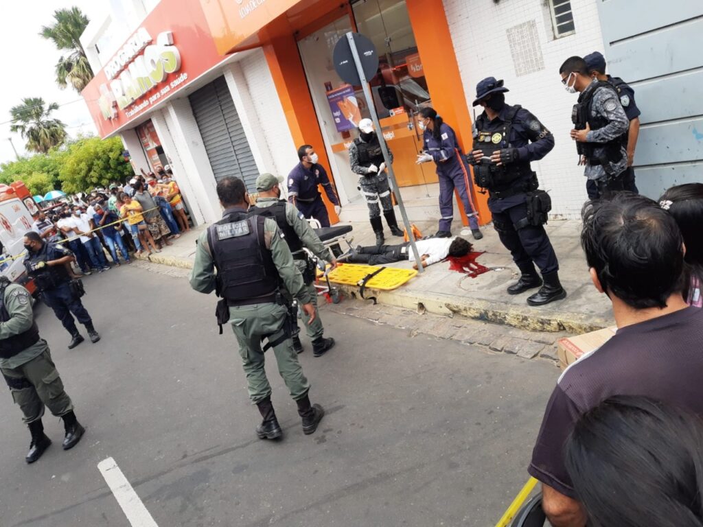 O crime acabou sendo registrado por câmeras de segurança da rua. Nas imagens é possível ver o momento em que as vítimas saem de dentro de uma drogaria e caminham na via, sendo um logo a frente segurando uma caixa e outro atrás.