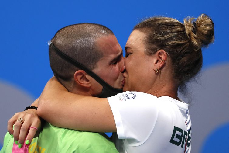 “Antes da prova, a Mi [Michelle Lenhardt, esposa e treinadora] disse para eu me permitir ser feliz. Vocês [jornalistas] sabem que tenho uma cobrança muito grande em cima de mim. Às vezes, meu trabalho psicológico é botar o pé no freio. Hoje [sábado] eu consegui não me cobrar tanto. Foi incrível”, disse o nadador, que, após receber a medalha, quebrou o protocolo e correu até a esposa para beijá-la.