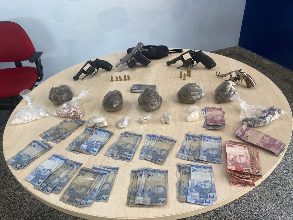 Após as investigações a equipe do Capitão Almeida da SEAOP direcionou até a casa de Diego onde chegando lá, o encontraram em posse de um revólver calibre 22, um quantitativo de variáveis de drogas e também dinheiro, o suspeito alegou já ter iniciado o trabalho durante a manhã da venda dos entorpecentes tendo em valor R$300.